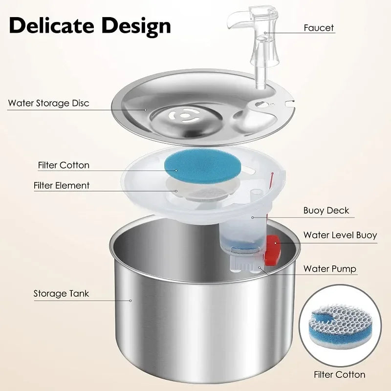 Drinker with good materials, easy to assemble and clean. The sensor works well and everything works as expected. It doesn't produce any noise.